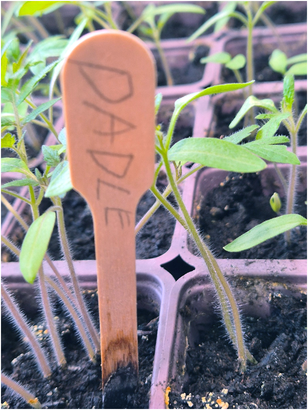 Ännu förkultiveras tomater och chili inomhus. Här gror dadel-tomater. De är små, söta och avlånga. Ännu är det frostnätter, även om dagarna börjar blir varma. Vi får ge oss till tåls. Men en dag kommer de att planteras i växthuset.